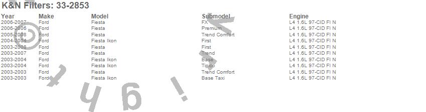 Below is an abbreviated list of applications for the Air Filter.Fiesta, Fiesta Ikon, Ford, 2006, 2005, 2004, 2003