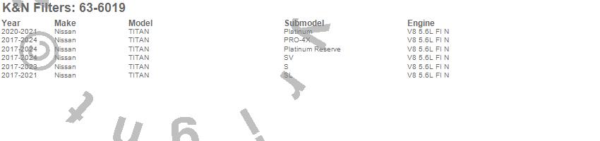 Below is an abbreviated list of applications for the 63 Series Aircharger Kit.Titan, Nissan, 2019, 2018, 2017