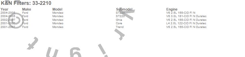 Below is an abbreviated list of applications for the Air Filter.Mondeo, Ford, 2007, 2006, 2005, 2004, 2003, 2002, 2001