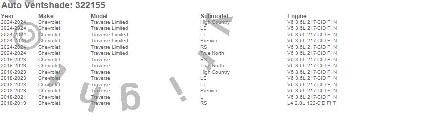 Below is an abbreviated list of applications for the Aeroskin Smoke Hood Protector.Traverse, Traverse Limited, Chevrolet, 2024, 2023, 2022, 2021, 2020, 2019, 2018
