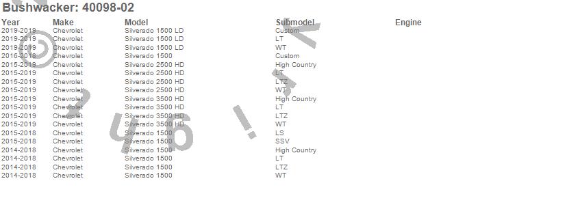 Below is an abbreviated list of applications for the Max Coverage Pocket Style Fender Flares.Silverado 1500, Silverado 1500 LD, Silverado 2500 HD, Silverado 3500 HD, Chevrolet, 2019, 2018, 2017, 2016, 2015, 2014