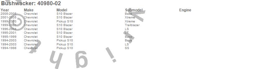 Below is an abbreviated list of applications for the OE Style Fender Flares.S10 Blazer, S10 Pickup, Chevrolet, 2005, 2004, 2003, 2002, 2001, 2000, 1999, 1998, 1997, 1996, 1995, 1994
