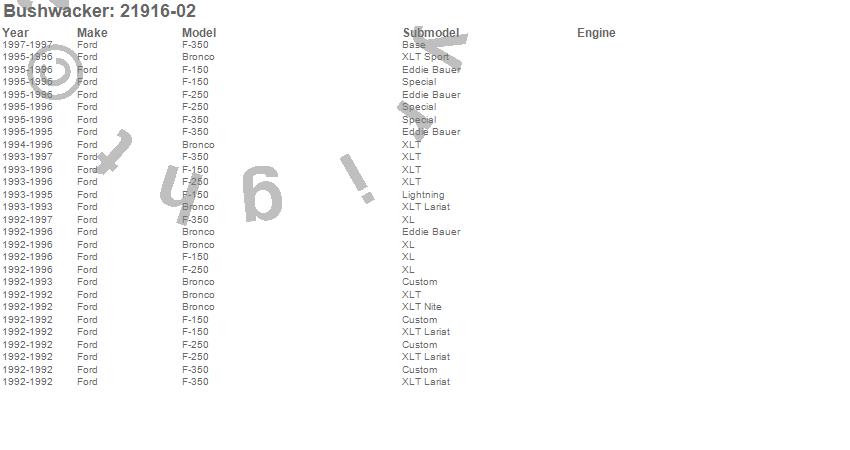 Below is an abbreviated list of applications for the OE Style Fender Flares.Bronco, F-150, F-250, F-350, Ford, 1997, 1996, 1995, 1994, 1993, 1992