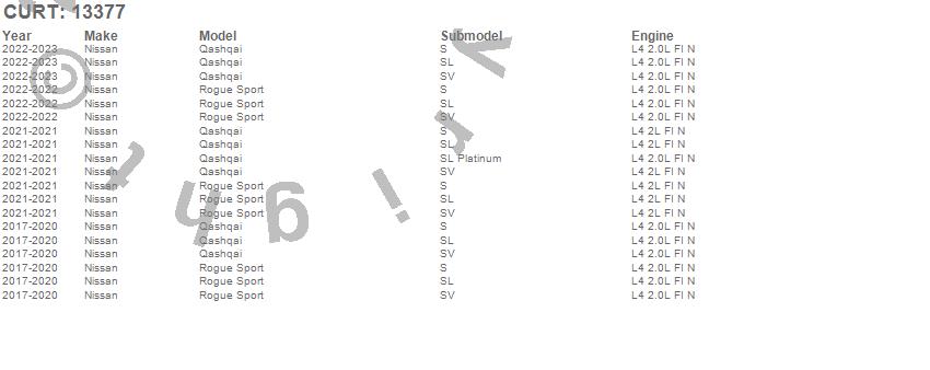 Below is an abbreviated list of applications for the Class III 2 in. Receiver Hitch.Qashqai, Rogue Sport, Nissan, 2023, 2022, 2021, 2020, 2019, 2018, 2017