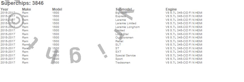 Below is an abbreviated list of applications for the Flashpaq F5 Programmer.1500, Ram, 2017, 2016, 2015