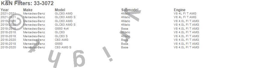 Below is an abbreviated list of applications for the Air Filter.C63 AMG, C63 AMG S, G550, G550 4x4, GLC63, GLC63 AMG, GLC63 AMG S, GLC63 S, S63 AMG, Mercedes-Benz, 2019, 2018, 2017, 2016, 2015