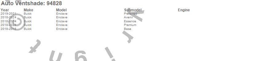 Below is an abbreviated list of applications for the Ventvisor Deflector 4 pc..Enclave, Buick, 2024, 2023, 2022, 2021, 2020, 2019, 2018