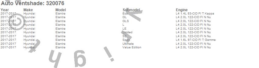 Below is an abbreviated list of applications for the Aeroskin Smoke Hood Protector.Elantra, Hyundai, 2017