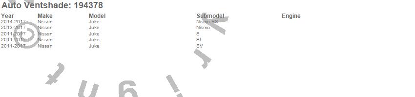 Below is an abbreviated list of applications for the Ventvisor In-Channel Deflector 4 pc..Juke, Nissan, 2017, 2016, 2015, 2014, 2013, 2012, 2011