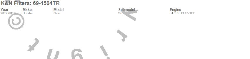 Brand: K&N FiltersPart Number: 69-1504TRAir Intake Kit Type: Incl. Air Filter/Heat Shield/Red Tubing - Estimated Horsepower Gain 11.15 HP At 4371 RPMUPC: 024844367136