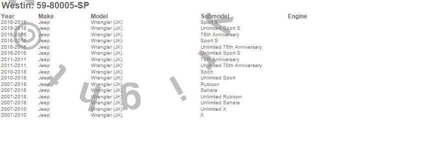 Below is an abbreviated list of applications for the WJ2 Front Bumper Skid Plate.Wrangler (JK), Jeep, 2018, 2017, 2016, 2015, 2014, 2013, 2012, 2011, 2010, 2009, 2008, 2007
