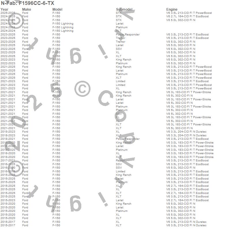 Below is an abbreviated list of applications for the Wheel To Wheel Nerf Step Bar w/Bed Access.F-150, F-150 Lightning, Ford, 2026, 2025, 2024, 2023, 2022, 2021, 2020, 2019, 2018, 2017, 2016, 2015