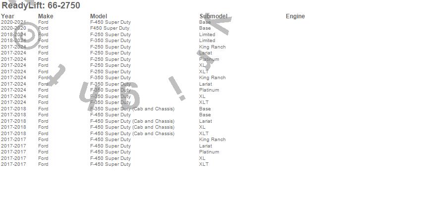 Below is an abbreviated list of applications for the Rear Block Kit.F-250 Super Duty, F-350 Super Duty, F-450 Super Duty, F450 Super Duty, Ford, 2025, 2024, 2023, 2022, 2021, 2020, 2019, 2018, 2017