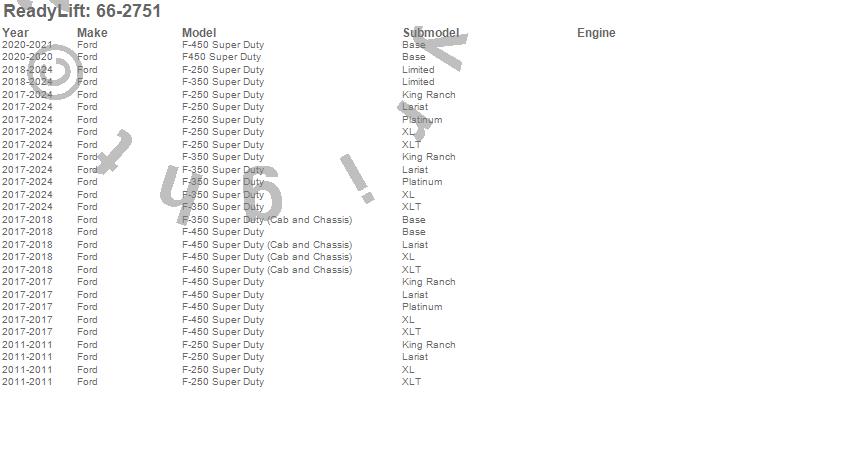 Below is an abbreviated list of applications for the Rear Block Kit.F-250 Super Duty, F-350 Super Duty, F-450 Super Duty, F450 Super Duty, Ford, 2025, 2024, 2023, 2022, 2021, 2020, 2019, 2018, 2017, 2011