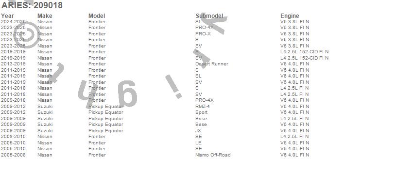 Brand: ARIESPart Number: 209018Nerf/Step Bar Type: Incl. Side Bars And Mounting Hardware - Carbon Steel - Semi-Gloss BlackUPC: 849055014194