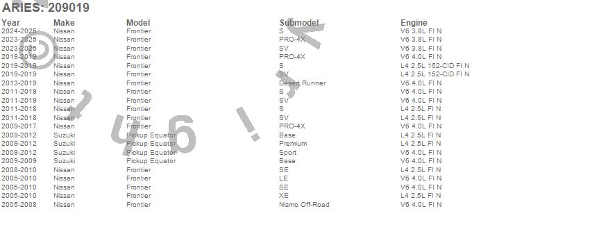 Brand: ARIESPart Number: 209019Nerf/Step Bar Type: Incl. Side Bars And Mounting Hardware - Carbon Steel - Semi-Gloss BlackUPC: 849055014217