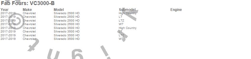 Below is an abbreviated list of applications for the ViCowl.Silverado 2500 HD, Silverado 3500 HD, Chevrolet, 2019, 2018, 2017