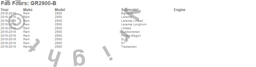 Below is an abbreviated list of applications for the Grumper Grill/Front Bumper.2500, Ram, 2018, 2017, 2016