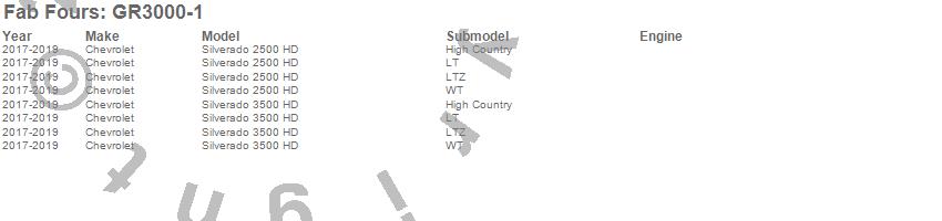 Below is an abbreviated list of applications for the Grumper Grill/Front Bumper.Silverado 2500 HD, Silverado 3500 HD, Chevrolet, 2019, 2018, 2017