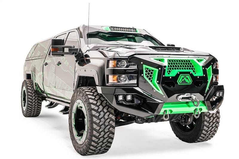 Buy this Grumper Grill/Front Bumper Fab Fours GR3000-1 2 Stage Black Powder Coated - Combines Both Grille And Bumper here at SVCustoms.com an authorized Fab Fours Bumper- Front dealer and distributor.