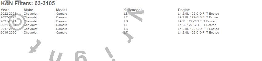 Below is an abbreviated list of applications for the 63 Series Aircharger Kit.Camaro, Chevrolet, 2019, 2018, 2017, 2016