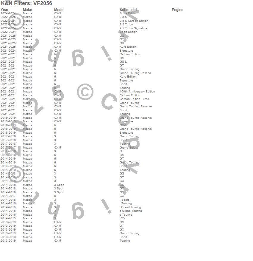 Below is an abbreviated list of applications for the Cabin Air Filter.3, 6, CX-5, Mazda, 2018, 2017, 2016, 2015, 2014, 2013