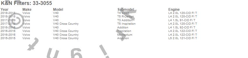 Below is an abbreviated list of applications for the Air Filter.V40, V40 Cross Country, Volvo, 2019, 2018, 2017, 2016, 2015