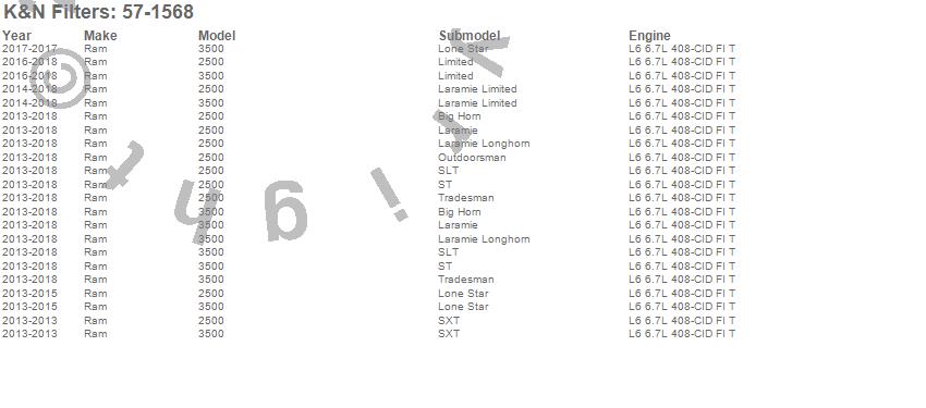 Below is an abbreviated list of applications for the 57i Series Induction Kit.2500, 3500, Ram, 2018, 2017, 2015, 2014, 2013