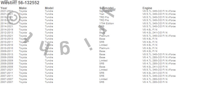 Below is an abbreviated list of applications for the HDX Stainless Drop Nerf Step Bars.Tundra, Toyota, 2021, 2020, 2019, 2018, 2017, 2016, 2015, 2014, 2013, 2012, 2011, 2010, 2009, 2008, 2007