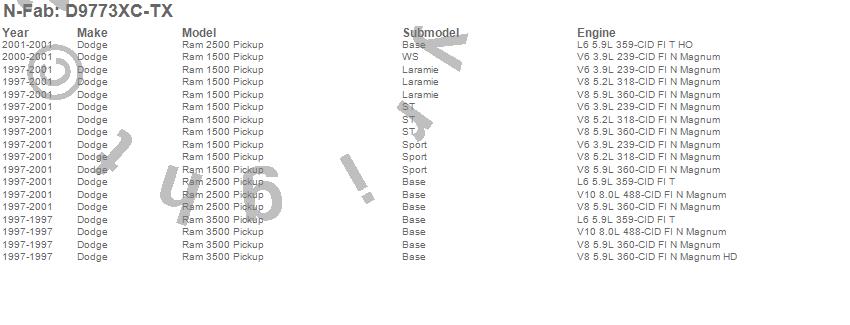 Below is an abbreviated list of applications for the Cab Length Nerf Step Bar.Ram 1500, Ram 2500, Ram 3500, Dodge, 2001, 2000, 1999, 1998, 1997