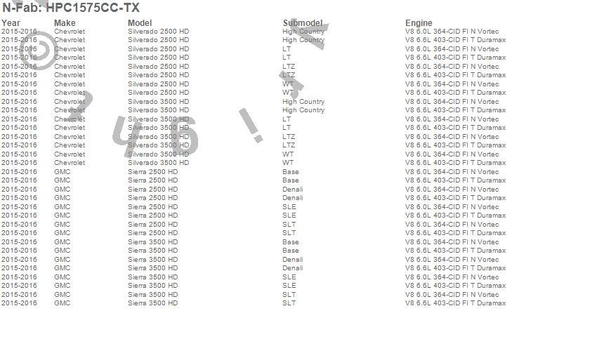 Below is an abbreviated list of applications for the Podium LG Step.Sierra 2500 HD, Sierra 3500 HD, Silverado 2500 HD, Silverado 3500 HD, Chevrolet, GMC, 2016, 2015