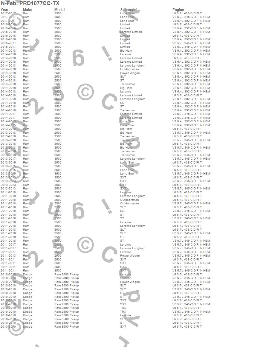 Below is an abbreviated list of applications for the Predator Pro Cab Length Step.2500, 3500, Ram 2500, Ram 3500, Dodge, Ram, 2018, 2017, 2016, 2015, 2014, 2013, 2012, 2011, 2010