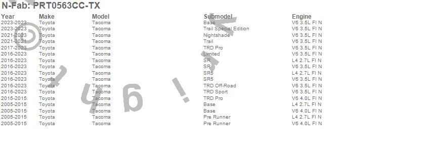 Below is an abbreviated list of applications for the Predator Pro Cab Length Step.Tacoma, Toyota, 2023, 2022, 2021, 2020, 2019, 2018, 2017, 2016, 2015, 2014, 2013, 2012, 2011, 2010, 2009, 2008, 2007, 2006