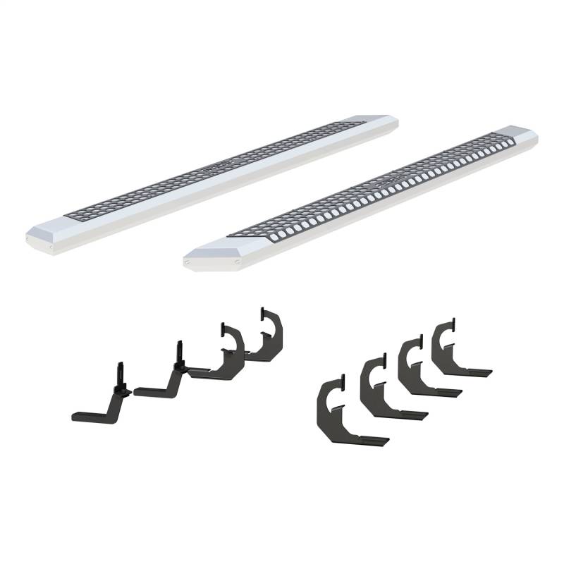 Brand: ARIESPart Number: 2555046Nerf/Step Bar Type: 5.5 in. - Incl. Side Bars PN[2055891] - VersaTrac Brackets PN[2055102] - Chrome Powder Coat AluminumUPC: 849055000401