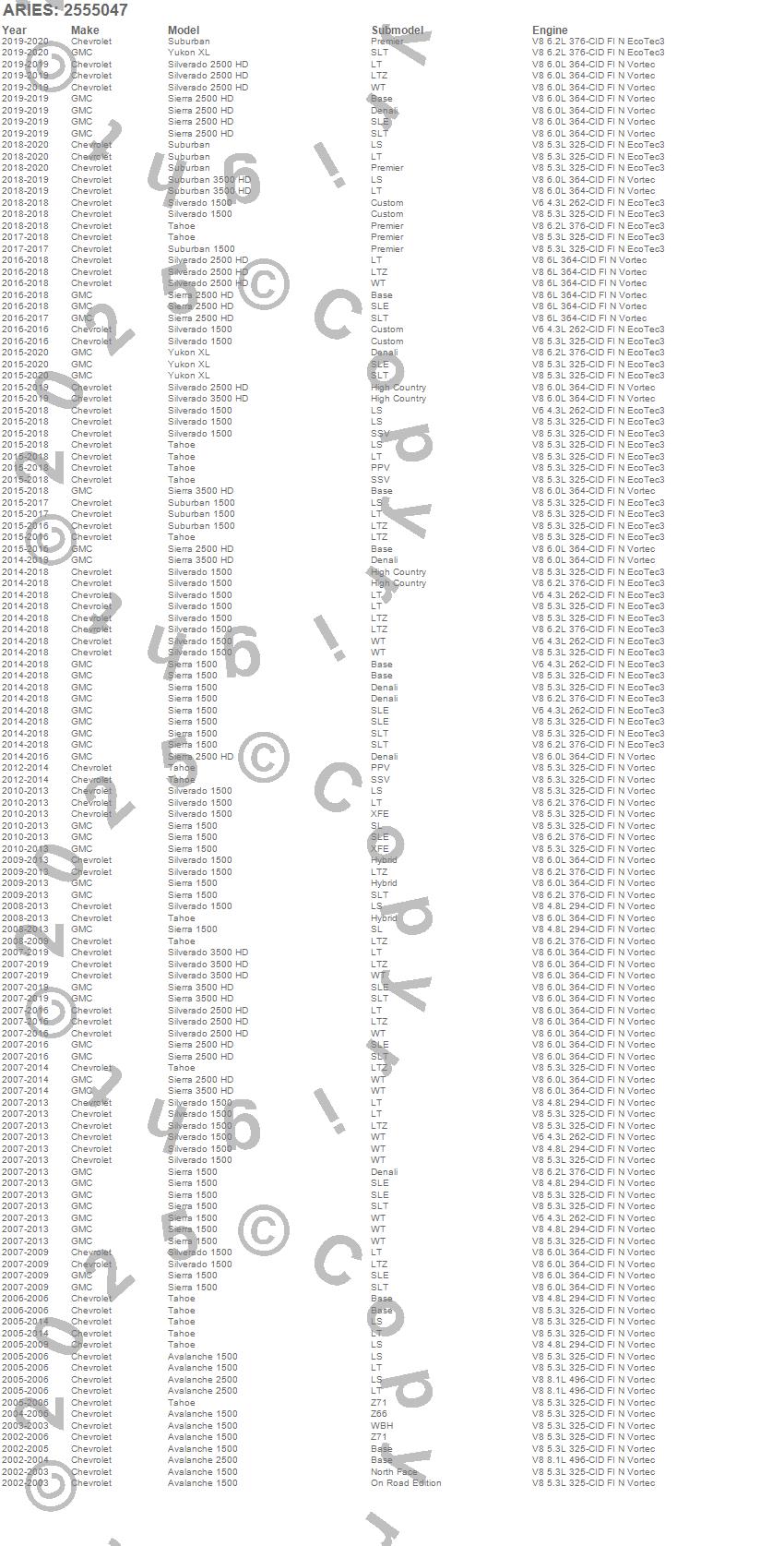 Below is an abbreviated list of applications for the AdvantEDGE Side Bars w/Mounting Brackets.Avalanche 1500, Avalanche 2500, Sierra 1500, Sierra 2500 HD, Sierra 3500 HD, Silverado 1500, Silverado 2500 HD, Silverado 3500 HD, Suburban, Suburban 1500, Suburban 3500 HD, Tahoe, Yukon XL, Chevrolet, GMC, 2020, 2019, 2018, 2017, 2016