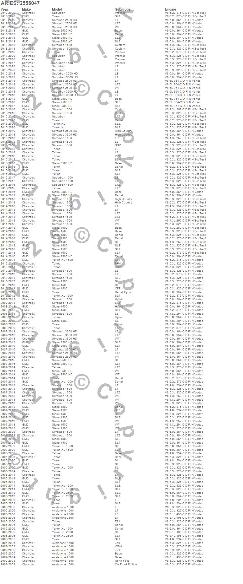 Below is an abbreviated list of applications for the AdvantEDGE Side Bars w/Mounting Brackets.Avalanche 1500, Avalanche 2500, Sierra 1500, Sierra 2500 HD, Sierra 3500 HD, Silverado 1500, Silverado 2500 HD, Silverado 3500 HD, Suburban, Suburban 1500, Suburban 3500 HD, Tahoe, Yukon, Yukon XL, Yukon XL 1500, Yukon XL 2500, Chevrolet, GMC, 2020, 2019