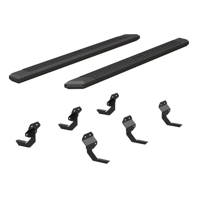 Brand: ARIESPart Number: 2556048Nerf/Step Bar Type: 5.5 in. - Incl. Side Bars PN[2055991] - VersaTrac Brackets PN[2055121] - Carbide Black Powder Coat AluminumUPC: 849055000456