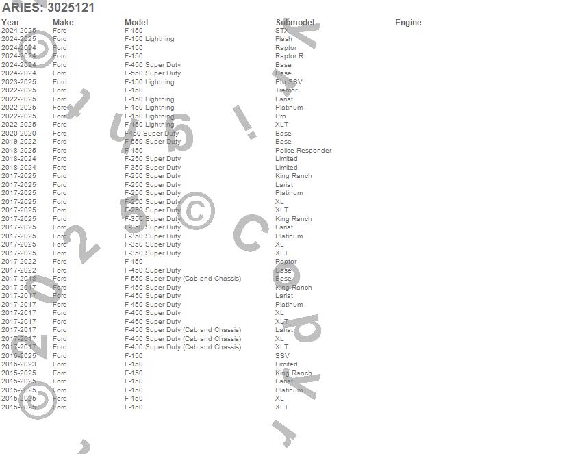 Brand: ARIESPart Number: 3025121Running Board Mounting Bracket Type: Incl. Mounting Brackets And Hardware Only - Running Boards Sold Separately - Textured Black Powder Coat - Carbon SteelUPC: 849055024926