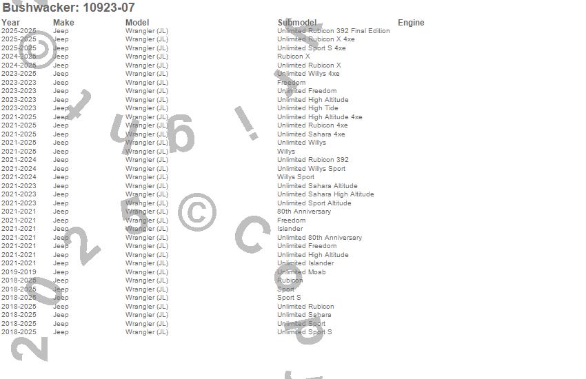 Below is an abbreviated list of applications for the Flat Style Fender Flares.Wrangler (JL), Jeep, 2026, 2025, 2024, 2023, 2022, 2021, 2020, 2019, 2018