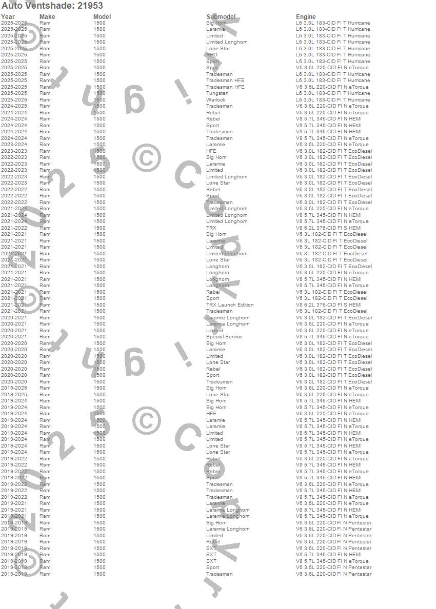 Below is an abbreviated list of applications for the Hoodflector Hood Protector.1500, Ram, 2026, 2025, 2024, 2023, 2022, 2021, 2020, 2019