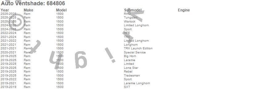 Below is an abbreviated list of applications for the Chrome Ventvisor Deflector 4 pc..1500, Ram, 2025, 2024, 2023, 2022, 2021, 2020, 2019