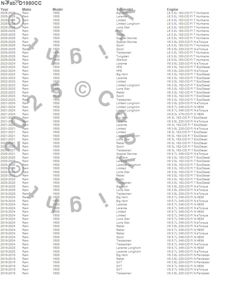 Below is an abbreviated list of applications for the Cab Length Nerf Step Bar.1500, Ram, 2025, 2024, 2023, 2022, 2021, 2020, 2019