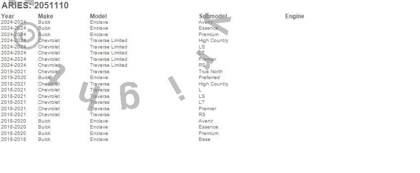 Below is an abbreviated list of applications for the AeroTread Mounting Brackets.Enclave, Traverse, Traverse Limited, Buick, Chevrolet, 2024, 2023, 2022, 2021, 2020, 2019, 2018