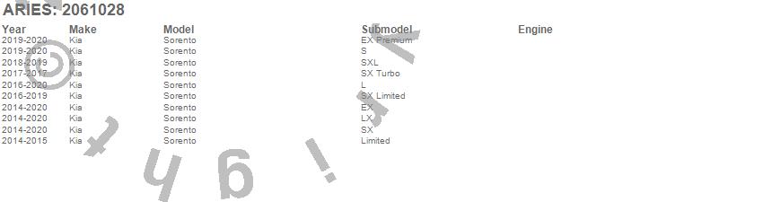 Below is an abbreviated list of applications for the AeroTread Running Boards w/Mounting Brackets.Sorento, Kia, 2020, 2019, 2018, 2017, 2016, 2015, 2014