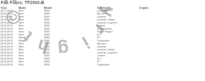 Below is an abbreviated list of applications for the Open Fender System.2500, 3500, Ram, 2018, 2017, 2016