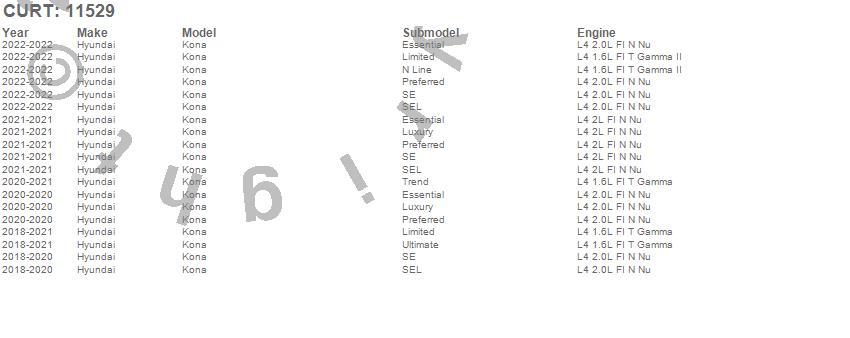 Below is an abbreviated list of applications for the Class I 1.25 in. Receiver Hitch.Kona, Hyundai, 2022, 2021, 2020, 2019, 2018
