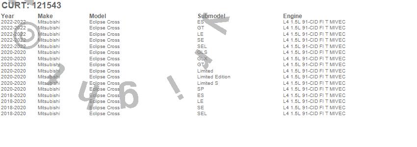 Below is an abbreviated list of applications for the Class II 1.25 in. Receiver Hitch.Eclipse Cross, Mitsubishi, 2022, 2020, 2019, 2018