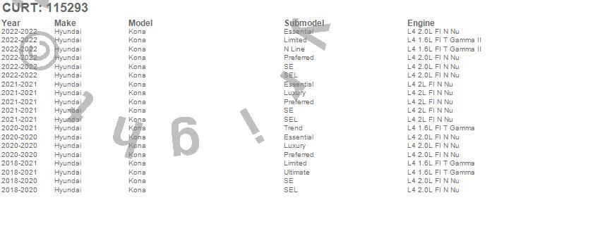 Below is an abbreviated list of applications for the Class I 1.25 in. Receiver Hitch.Kona, Hyundai, 2022, 2021, 2020, 2019, 2018
