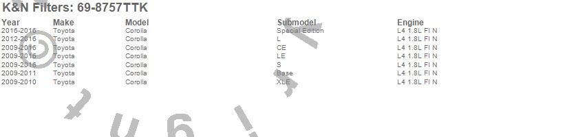 Below is an abbreviated list of applications for the Typhoon Short Ram Cold Air Induction Kit.Corolla, Toyota, 2016, 2015, 2014, 2013, 2012, 2011, 2010, 2009