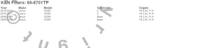 Below is an abbreviated list of applications for the Typhoon Short Ram Cold Air Induction Kit.IS250, IS350, Lexus, 2013, 2012, 2011, 2010, 2009, 2008, 2007, 2006